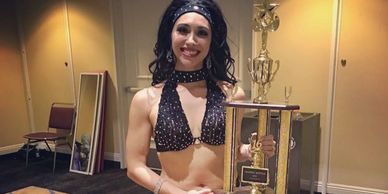 "I have worked with Rukshana in business and as a client of her beautiful costumes.  I'm amazed at the depth of her talent!   She only needs to look at something and she can make it better than the  original.  Her ready to wear line is so comfortable and functional;  it  allows you to get a full range of motion in your dance.  If it hadn't  been for Rukshana designing my costume for Wiggles of the West I don't think I would have won!  I received very high marks for costuming and several judges wanted my costume!"