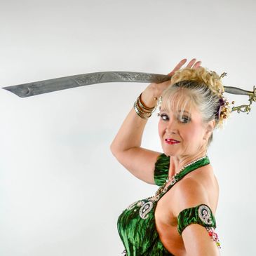 Ever wanted to learn how to keep a sword or tray on your head without looking like you’re working too hard? How about some cool moves to do while performing with these items? Performing with swords and trays cross the tribal/cabaret divide. This class will introduce the novice to the techniques and tricks used by dancers performing with balance props and provide challenging combos for the more experienced dancer. Requirements: sword or tray (if new to this, look for a tray with a 14 to 16” diameter that has some weight to it). Hair with product in it works better than sparkly clean hair. Hair combs help to level your head under the tray, as do headbands and some flat flowers.